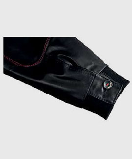 Classic leather jacket made of high quality lamb nappa leather in black with typical BRABUS stitching in red around the shoulders. Handmade in Germany. Logos are shown on the lining, buttons and zipper.Lining: 100% viskose